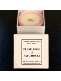 Plum, Rose & Patchouli, This luxury range of Soy candle comes in a 20cl Pastel Pink matt glass vessel which is supplied in a gift box.